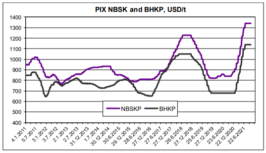 با گذشت ماه ، ما از آخرین مذاکرات قیمت ، از جمله برخی کاهش ها ، تأیید قیمت بیشتری دریافت کردیم. پس از کاهش 10 درصدی بالاترین و پایین ترین قیمت ها ، شاخص PIX NBSK نسبت به هفته قبل 32 سنت یا 0.02 درصد جزئی را از دست داد و 1،339.68 دلار در هر تن ثبت شد. تضعیف 0.03 درصدی یورو (میانگین هفتگی) در برابر دلار ایالات متحده بر ارزش شاخص تبدیل شده در یورو تا حدودی صعودی بود. این تبدیل تنها با 2 سنت یا 0.00٪ افزایش به 1.156.99 یورو در تن افزایش یافت. فاصله اطمینان دوباره در 1،339.49-1-1339.87 دلار در تن تغییر شکل داد.