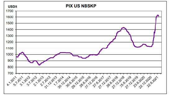 شاخص خمیرکاغذ NBSK در آمریکا – 27 جولای 2021